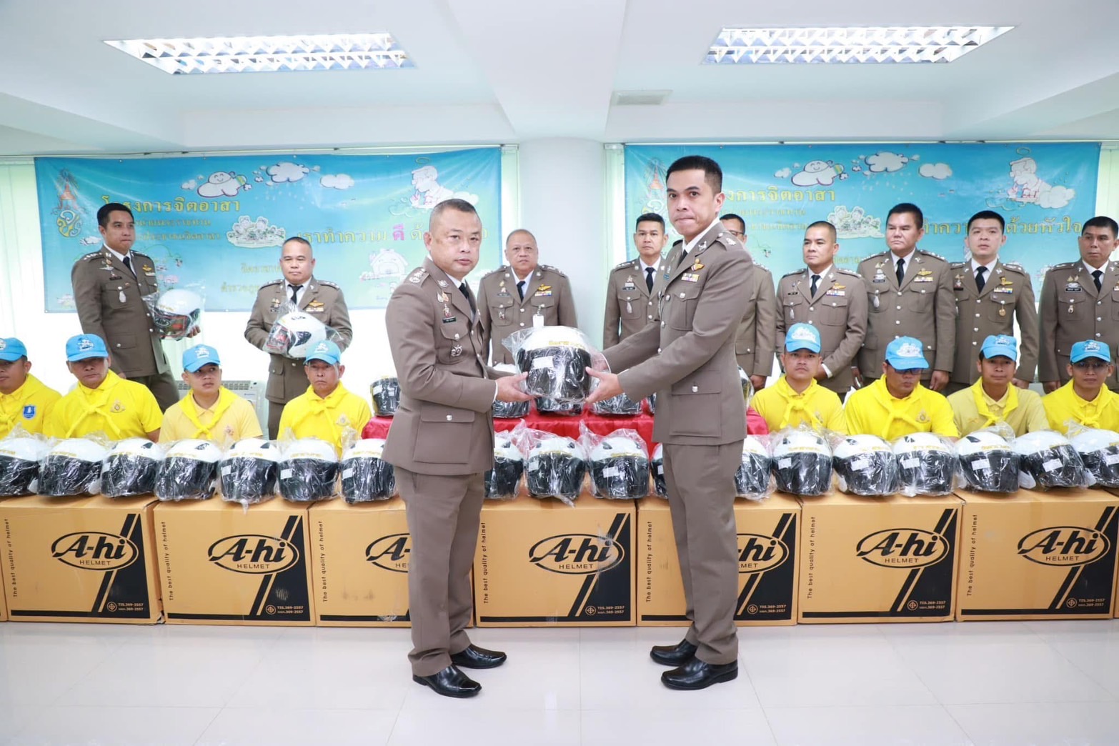 เข้าร่วมพิธีมอบหมวกนิรภัยให้กับ หน.สภ.ในสังกัด เพื่อนำไปมอบให้กับประชาชนตามโครงการ จิตอาสาจราจร รณรงค์การขับขี่ปลอดภัยสวมใส่หมวกนิรภัยเพื่อลดอุบัติเหตุจราจรทางบก