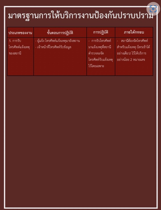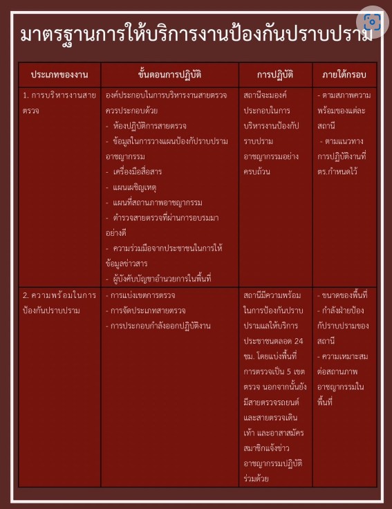 มาตรฐานการให้บริการงานป้องกันปราบปราม