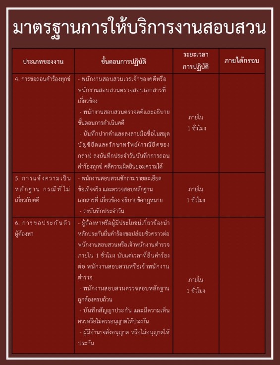 มาตรฐานการให้บริการงานสอบสวน