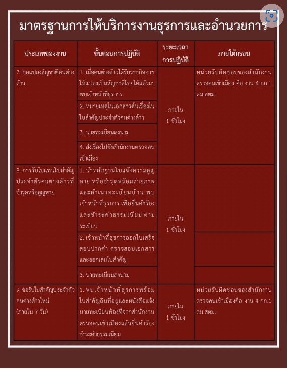 มาตรฐานการให้บริการประชาชน