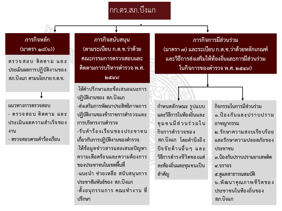 ระเบียบ ก.ต.ช. ว่าด้วยคณะกรรมการตรวจสอบและติดตามการบริหารงานตำรวจ (ฉบับที่ 3) พ.ศ.2551 ข้อ 20 ให้ กต.ตร.สน. หรือ ก.ต.ต. สภ. มีอำนาจ หน้าที่ดังต่อไปนี้