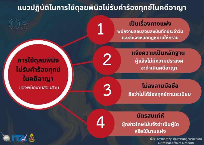 แนวปฏิบัติในการใช้ดุลยพินิจไม่รับคำร้องทุกข์ในคดีอาญา