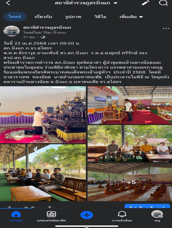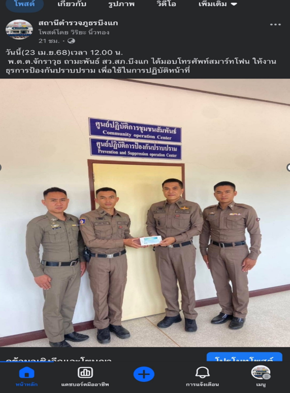 Facebook fanpage “สถานีตำรวจภูธรบึงแก” www.facebook.com/profile.php?id=100064537878654